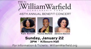 Features Eastman Student and Current Scholarship Recipient, Kayla Sconiers and Adrienne Danrich, Midwest EMMY Award-Winning Artist and Educator ROCHESTER, NY (December 12, 2022) — Since its establishment in 1977, the William Warfield Scholarship Fund, Inc. (WWSF) has provided financial aid to more than 50 African American classical singers, including Eastman